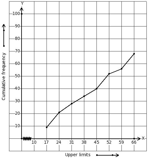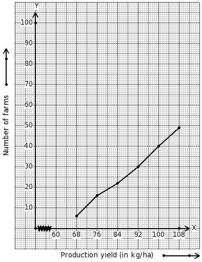The production yield in kg per hectare of wheat of 49 farms of a village is given below. Identify the frequency distribution table for the given less than ogive.