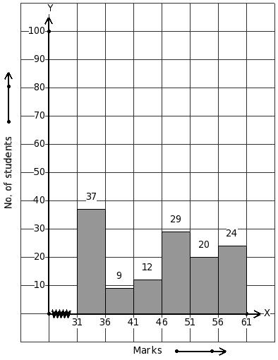 The histogram given below represents the marks obtained by some candidates in an examination.