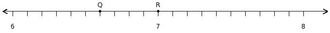 Find the product of the rational numbers at the points labelled with letters Q and R