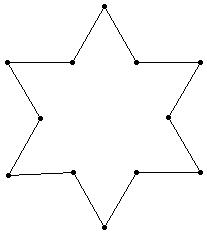 If the length between any two consecutive points is 5.7 cm, find the perimeter of the given figure