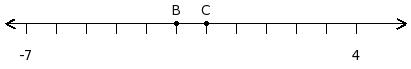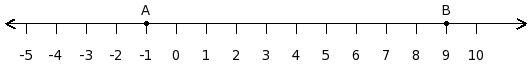 Find the difference between the values of numbers at point A and B
