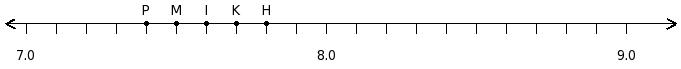 Find the position of the decimal number 7.6 on the number line