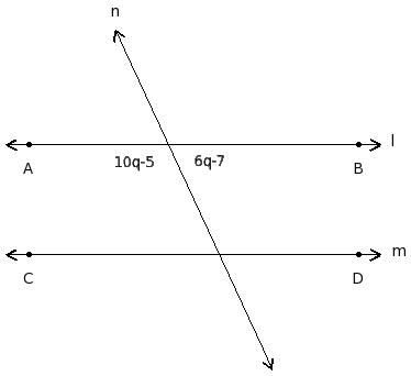 In the given figure l ∥ m. Find the value of 'q'