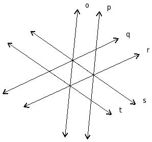 In the given figure, o , p , q , r , s , t are lines in a plane. By looking at the figure, which of the following are true?
