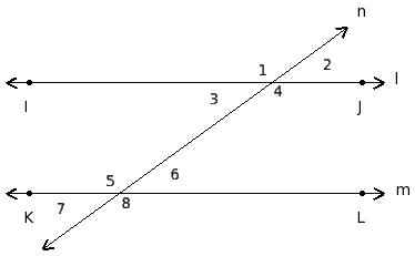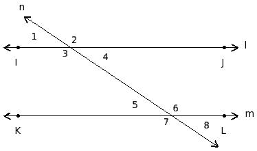 ∠1 , ∠5 ; ∠2 , ∠6 ; ∠3 , ∠7 ; ∠4 , ∠8