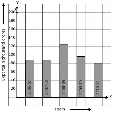 The following bar graph shows the export earnings of a country (in thousand crore) during five years. Find the year that has 80 thousand crore export earnings.