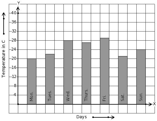 Following bar graph gives the average temperature of a place during a week. Find the day that has minimum temperature.