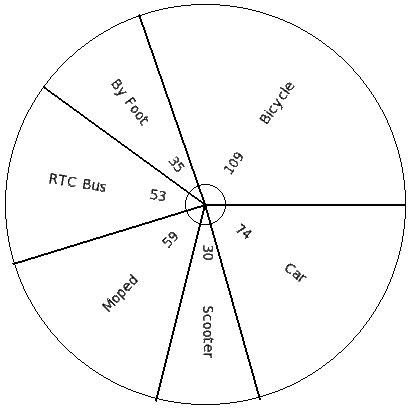 450 students of a certain locality use different modes of travel to school as given below.