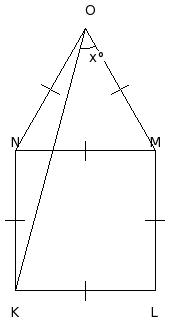 In the adjoining figure, equilateral △NMO surmounts square KLMN. If MOK = x°, find the value of x.