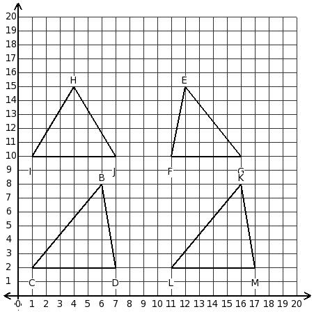 Consider the following triangles. Which two triangles have the same area?