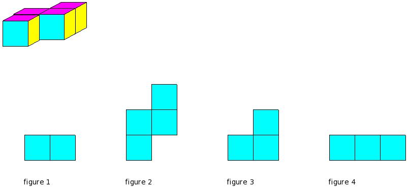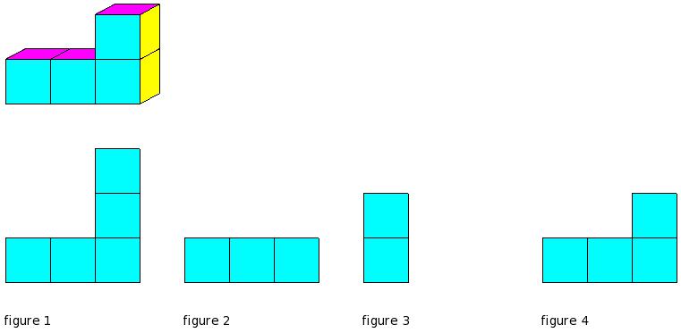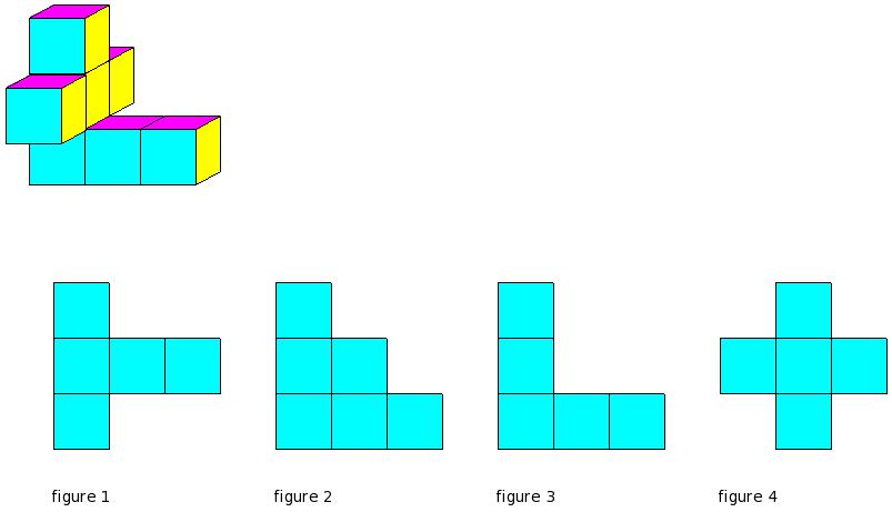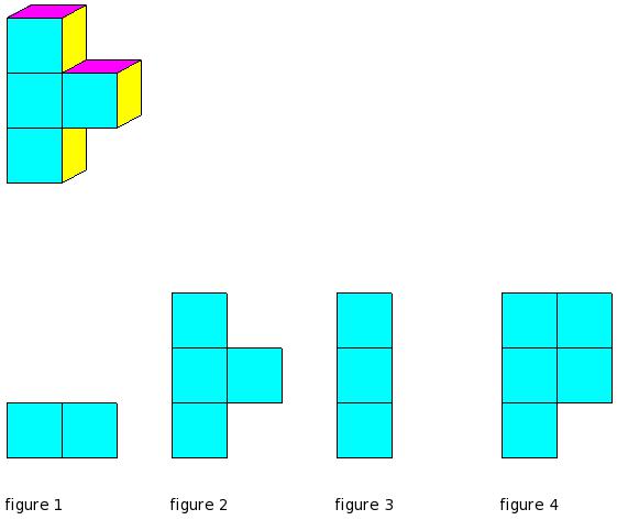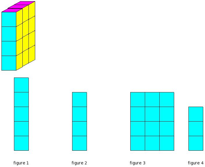 Which of the figures represent the front view of the given 3-D figure?