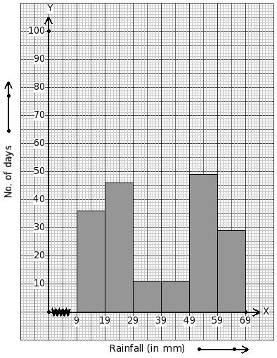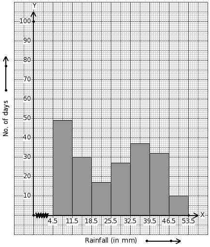 Rainfall of 182 days (in mm) are given below. Identify the class mark table for the given histogram.
