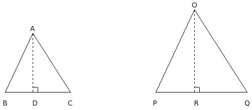 In the given figure, △ABC & △OPQ are similar triangles. If the ratio of the heights AD : OR = 12 : 17, then the ratio of their areas is