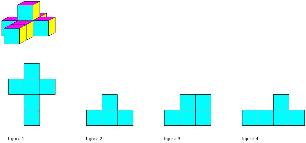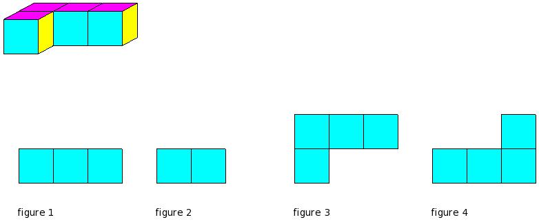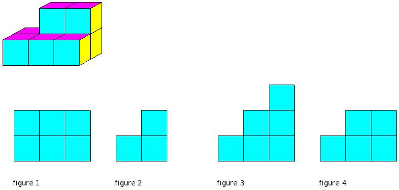 Which of the figures represent the front view of the given 3-D figure?