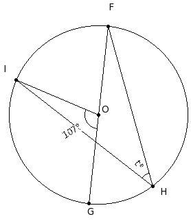 In the given figure, O is the centre of the circle and FG is a diameter. If ∠GOI = 107°, find ∠FHI