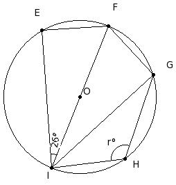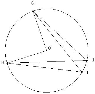 O is the centre of the circle. If ∠GOH = 88°, find the angle ∠I