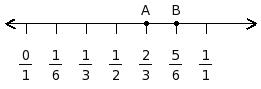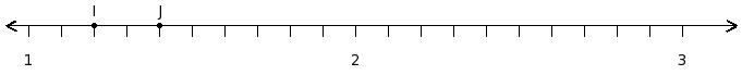 Find the difference of the rational numbers at the points labelled with letters I and J
