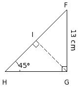 In the given figure, △FHG is right angled at G. If FG = 13 cm and ∠H = 45°, find FH
