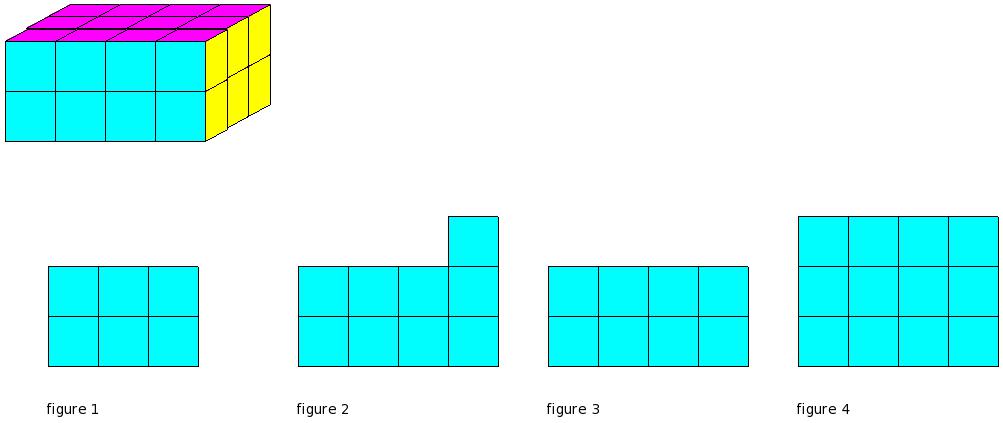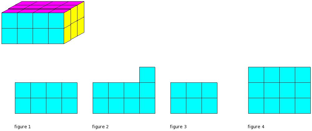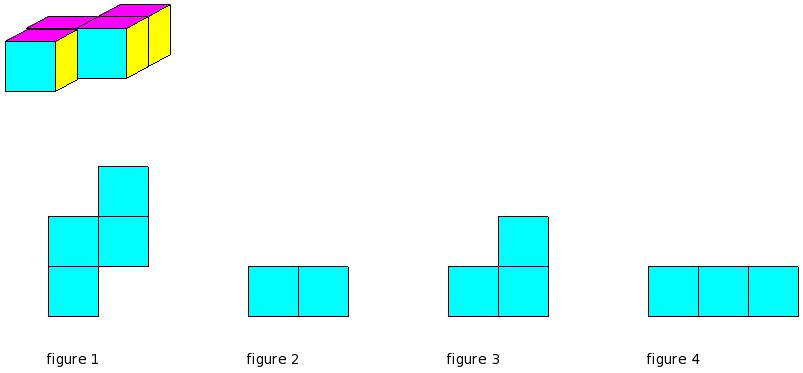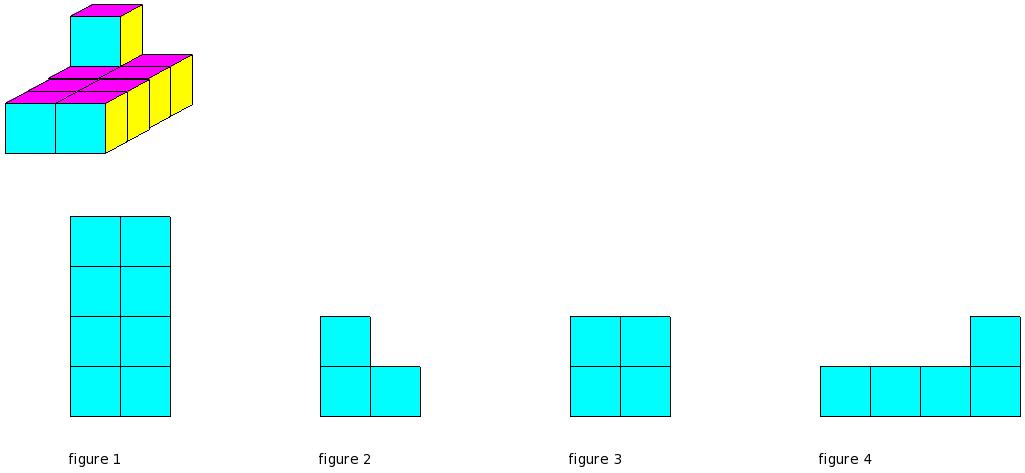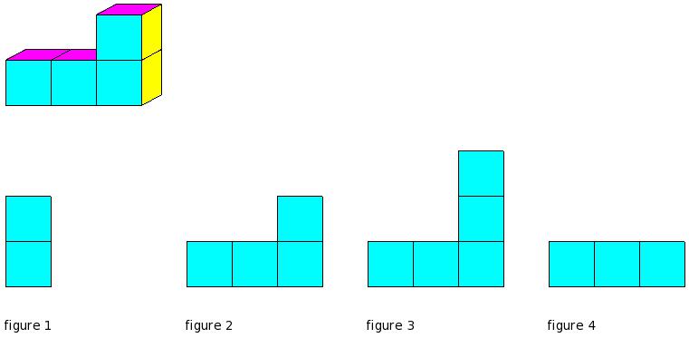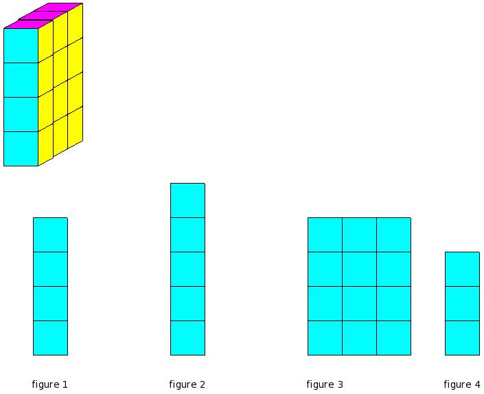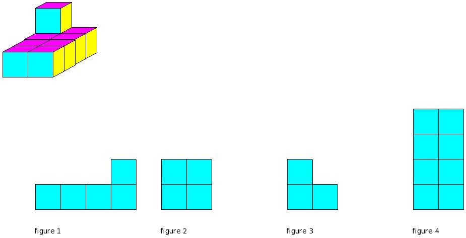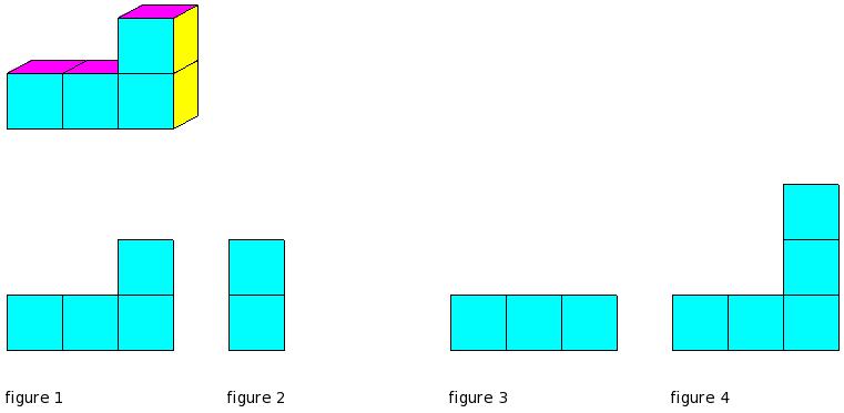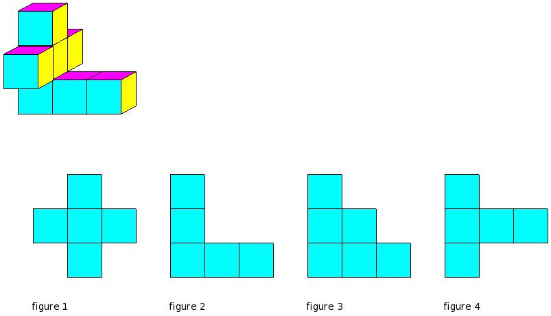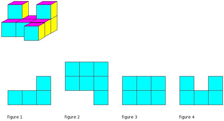 Which of the figures represent the front view of the given 3-D figure?