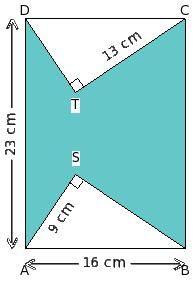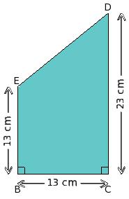 Find the area of shaded region in the adjoining figure, given that BC = 13 cm, CD = 23 cm, BE = 13 cm and ∠EBC = ∠BCD = 90°.