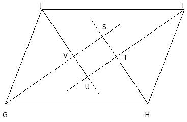 In the given figure, GHIJ is a parallelogram. The bisector of the angles G, H, I & J intersect at S, T, U & V to form a quadrilateral. Find ∠VST