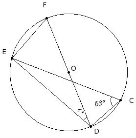 In the given figure, O is the centre of the circle and DF is a diameter. If ∠ECD = 63°, find ∠EDF