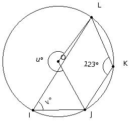 In the given figure, O is the centre of the circle. If ∠JKL = 123°, find ∠LOJ + ∠JIL