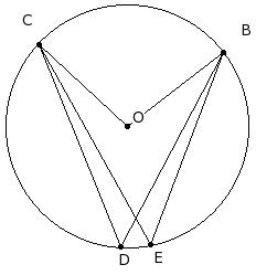 O is the centre of the circle. If ∠BOC = 100°, find the angle ∠E