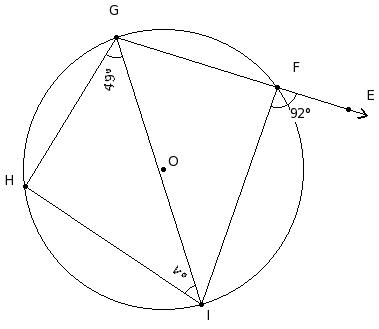 In the given figure, O is the centre of the circle. If ∠IGH = 49° and ∠EFI = 92°, find ∠GIH
