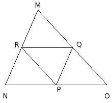 In the given figure, points P , Q and R are the mid-points of sides NO, OM and MN of △MNO. Which of the following are true?