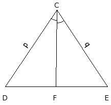 In the given figure, given ∠FCD = ∠ECF, p = 10 cm, q = 10 cm and DE = 20 cm, find FE =