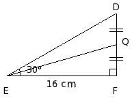 In the given figure, △DEF is a right angle triangle with ∠F = 90° and EF = 16 cm. Q is the mid-point of DF. Find ∠QED using tables.