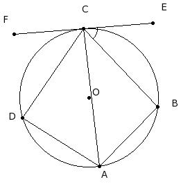 In the given figure, ABCD is a cyclic quadrilateral such that CA bisects ∠DAB and EF is the tangent at C. If ∠CAB = 51°, find ∠ECB