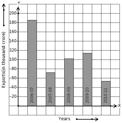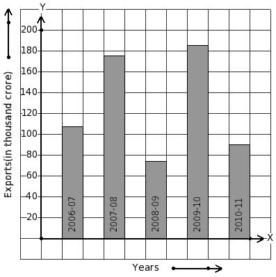 The following bar graph shows the export earnings of a country (in thousand crore) during five years. Find the year that has 90 thousand crore export earnings.