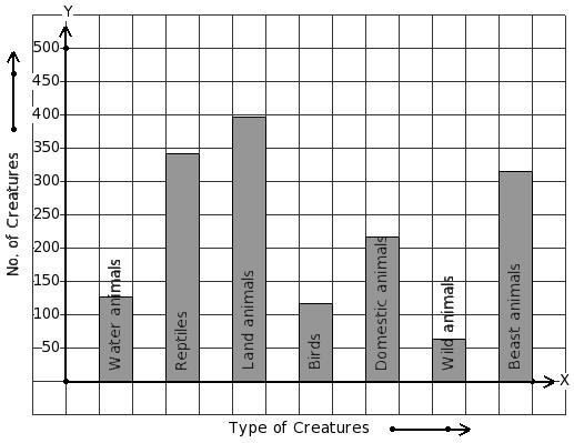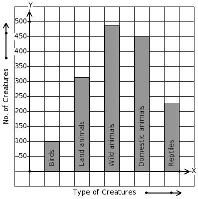 There are 1575 creatures in a zoo as shown in the bar graph. Identify the table for the given bar diagram.