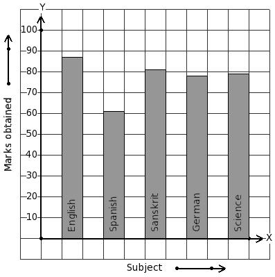 The marks obtained by Tarun in his annual exam are shown below. Find the subject that has maximum score.