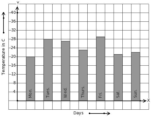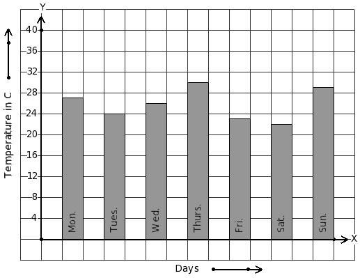 Following bar graph gives the average temperature of a place during a week. Find the day that has maximum temperature.