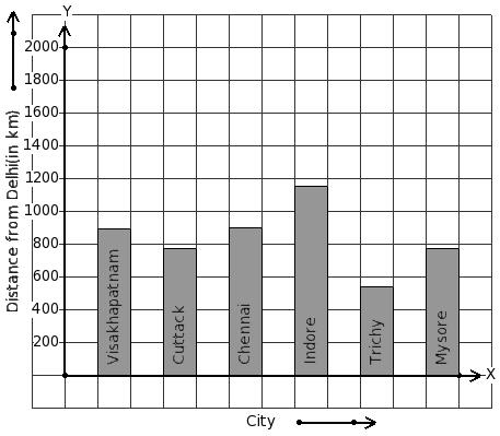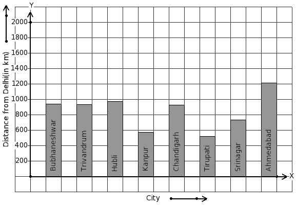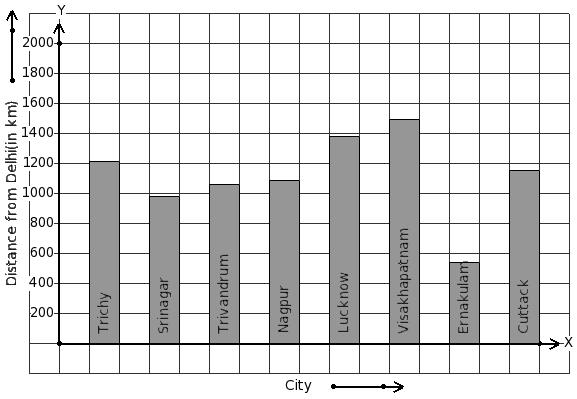 The air distance of some cities from Delhi (in km) are given below. Find the city that has minimum distance.