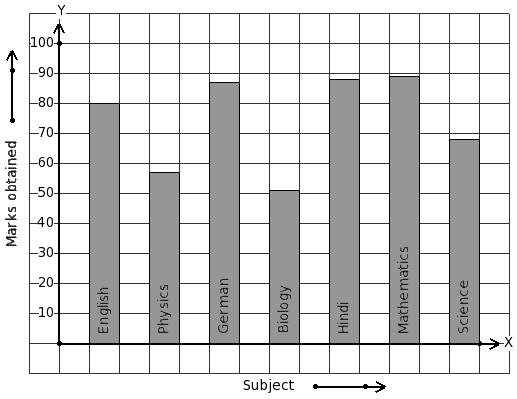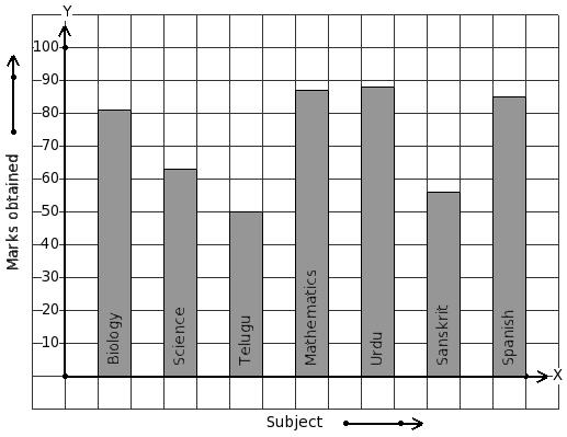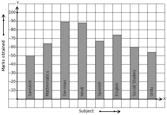 The marks obtained by Srikanth in his annual exam are shown below. Find the subject that has maximum score.