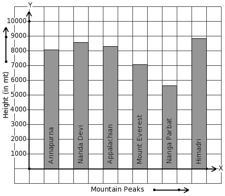 Given below is the column-graph showing heights of some mountain peaks. Find the mountain that has 8292 m height.