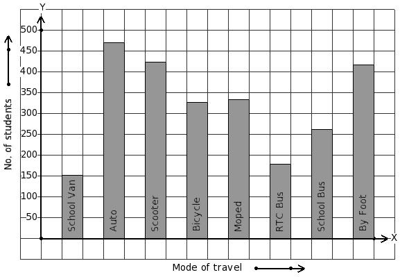 Students of a certain locality use different modes of travel to school as given below. Find the mode of travel that has minimum students.