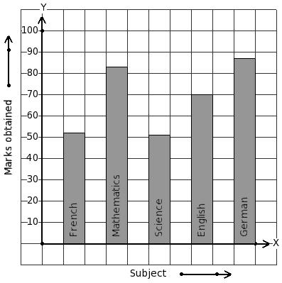 The marks obtained by Kalyan in his annual exam are shown below. Find the subject that has maximum score.