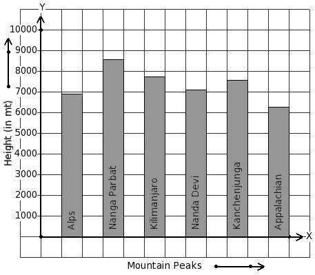Given below is the column-graph showing heights of some mountain peaks. Find the mountain that has maximum height.