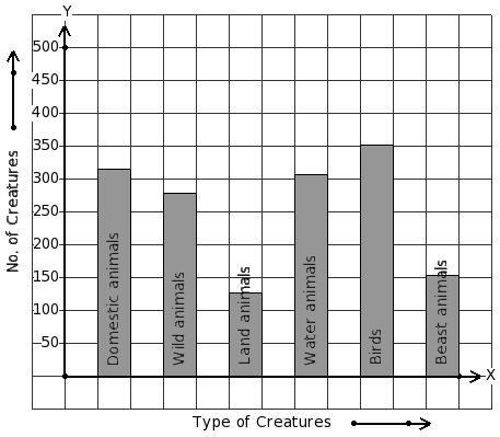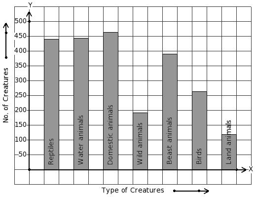 There are 1530 creatures in a zoo as shown in the bar graph. Identify the table for the given bar diagram.
