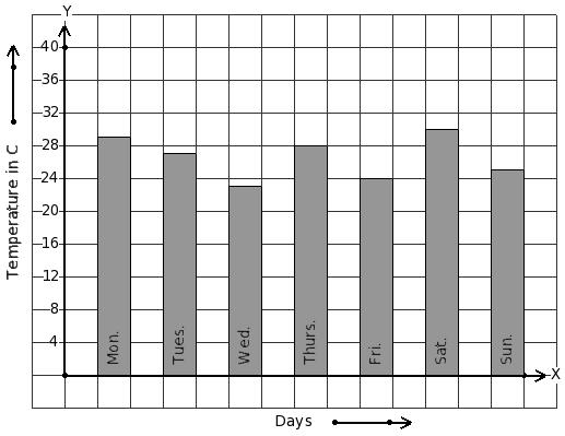 Following bar graph gives the average temperature of a place during a week. Find the day that has minimum temperature.