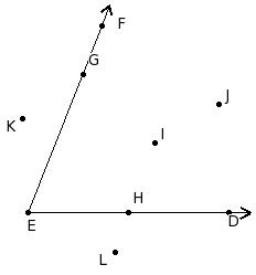 In the given figure, write the points belonging to the exterior of the angle