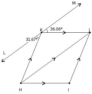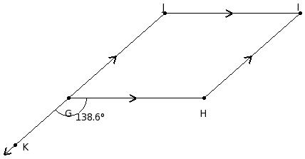 In the adjoining figure, side JG of parallelogram GHIJ has been produced to K. If ∠HGK = 138.6° , find the measure of each angle of the parallelogram.