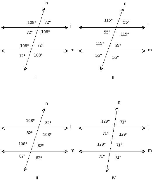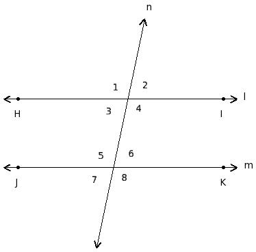 ∠1 , ∠5 ; ∠2 , ∠6 ; ∠3 , ∠7 ; ∠4 , ∠8