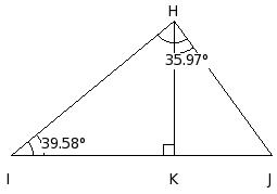 In the given figure , if KH ⟂ IJ and ∠HIK = 39.58°, find ∠KJH