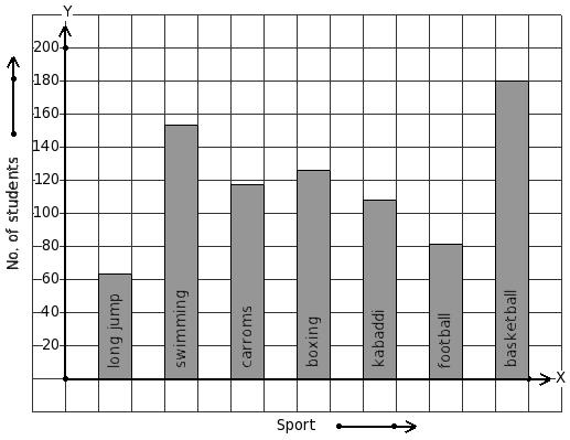The following bar graph gives data regarding the favourite sport of 828 students of a school. Identify the table for the given bar diagram.